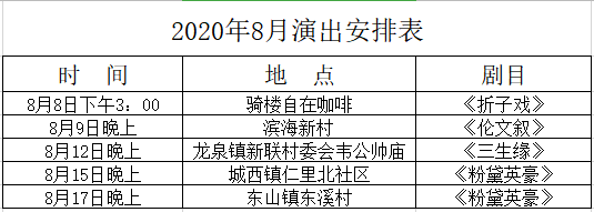 詳情請(qǐng)看以下2020年8月演出安排表: